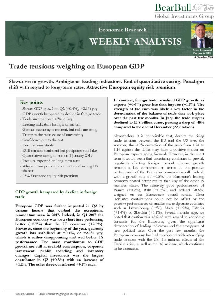 Slowdown in growth. Ambiguous leading indicators. End of quantitative easing. Paradigm shift with regard to long-term rates. Attractive European equity risk premium.